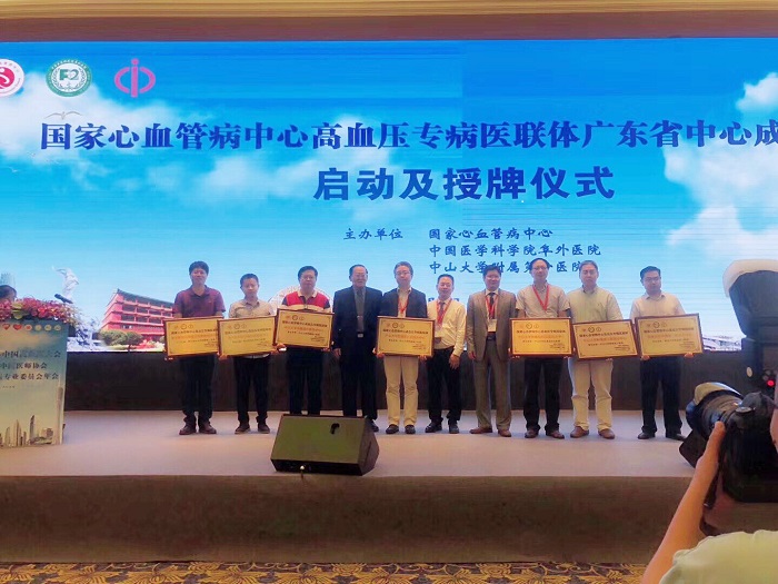 7月7-8日,2018中国高血压大会暨中国医师协会高血压专业委员会年会在广州召开。会上,成立了国家心血管病中心高血压专病医联体广东省中心,第三附属医院心血管内科主任周滔代表医院接过医联体分中心牌匾。