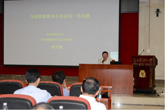 会议邀请了学校学术道德委员会主任委员赵克森作了“当前师德教育中的一些问题”的报告,赵教授以丰富详实的事例指出了我校发展过程中形成的优良作风,总结了当前研究生和师德教育存在的问题,并对我校多起学术不端问题的进行了分析。