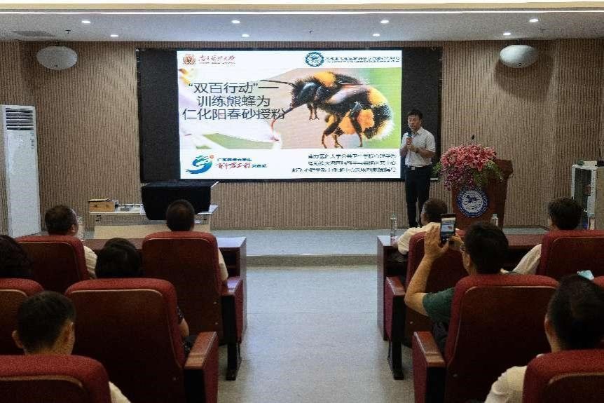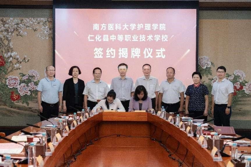 与会人员就医疗共建、产业发展、教育提质、科研转化等工作进行了讨论交流,明确了下一步工作方向。会上,护理学院和中等职业技术学院举办了共建签约授牌仪式。会后,大家参观了粤港澳大湾区脑科中心,观看了“双百行动”产学研用融合项目——模拟熊蜂授粉阳春砂花实验展示。