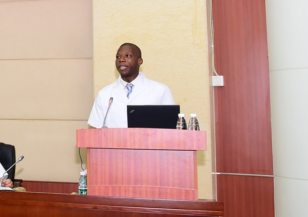 来自非洲的新员工代表儿科董瀚文医师分享了他来到中国的所见所闻所思,表达了要做一名内外兼修、品德高尚、有爱心、有责任心的儿科医生的决心。