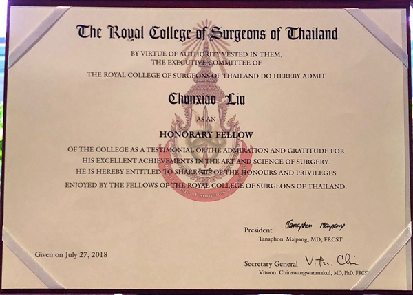 此次刘春晓被泰国皇家外科学院聘为荣誉院士,正是为表彰其卓越的外科技艺以及为泰国泌尿外科医生教育和培训作出的杰出贡献。据悉,院士称号是泰国皇家外科学院对外科医师的最高肯定。