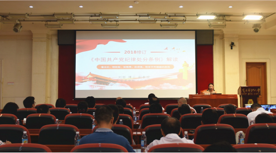 9月29日下午,学校纪律教育学习月活动第二场专题辅导报告会在枫林堂枫叶厅举行,广东省委党校法学教研部副教授刘丽受邀围绕新修订的《中国共产党纪律处分条例》作专题辅导报告。报告会由学校党委副书记昌家杰主持。副校长熊梦辉,纪委委员、机关党员干部、教辅机构主要领导,各学院科级及以上干部、专职辅导员,各附属医院领导班子成员、机关职能部门领导、科室主任、副主任、党支部书记、护士长等900余人,分别在校本部主会场和附属医院、顺德校区等9个分会场聆听了报告。