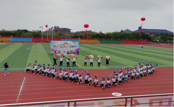 功夫不负有心人。在校运会的闭幕式上,同学们精神抖擞,气势如虹,随着振奋人心的音乐节奏舞动着;他们身着上白下黑的统一服装,手拿蓝色的手球,快速变化成一幅幅赏心悦目的图形。期间更有两只可爱的布偶熊,动作憨态可掬;而身着古装、举着牌子的小博小雅更是让人耳目一新。