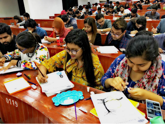 12月21日下午,学校第四届留学生中国诗词书写比赛在教学馆101和102教室举行,比赛以弘扬中华优秀传统文化为主题,来自泰国、美国、印度、孟加拉、约旦、沙特阿拉伯、肯尼亚、叙利亚等国的130余人参加了比赛。