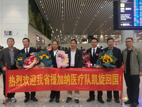 12月20日,广东省第六批援加纳医疗队队员、我校总务处潘雪花乘机安全抵达广州,圆满完成了援加纳医疗队后勤饮食保障工作。广东省卫生医疗对外合作服务中心主任岳金良、学校总务处党委书记邱晓光等一行到机场迎接。