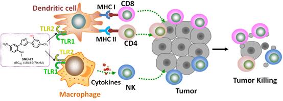 TLR1/2特异性小分子激活剂SMU-Z1抑制肿瘤机制模式图