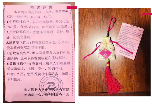 医院治未病中心作为国家中医药管理局重点建设单位和广东治未病5A单位,发挥中医治未病优势,积极快速响应。副院长兼治未病中心学术带头人、国家老中医药经验传承导师、临床中药专家彭康教授以及治未病中心主任、广东省中西医结合学会感染病专业委员会副主委、中医温病专家文小敏教授均认为增强体质防御外邪入侵对防控疫情大有裨益,借鉴2009年制作香囊防甲流的成功经验,为市民发放馥馨香囊,供不应求。