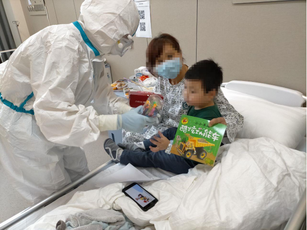 禾正病区最小的患者仅有几个月,一直隔离的小家伙儿奶粉、辅食眼看就吃完了,正值春节,网购物流不畅,家人也都居家隔离,没法送来。医护人员知道后赶紧联系后勤人员,按照孩子的饮食习惯前往超市购买,确保孩子不断粮。还有些稍大的孩子,本是跑跑颠颠疯玩的年纪,却被困在病房里,天天只能看电视、玩手机,不仅无聊,更伤眼睛。考虑到这些,医护人员特地准备了积木、拼图、画笔、书籍、玩具,丰富小患者们的隔离生活,让孩子们乐起来。
