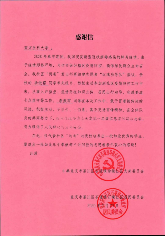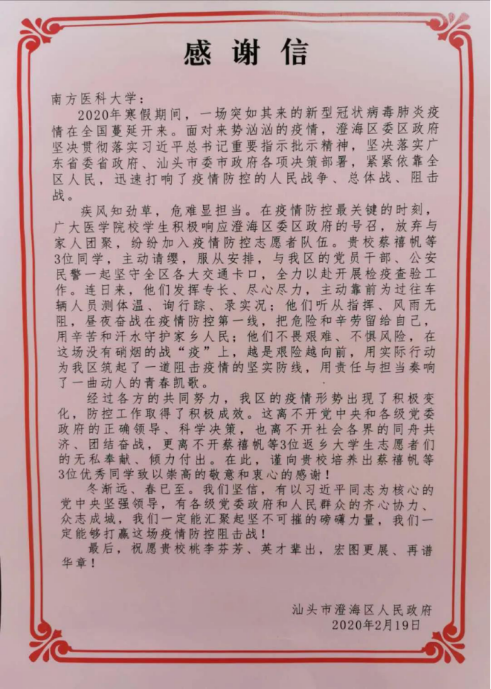 几个月以来,南医学子虽分散各地,但为人民服务的赤心不变,在疫情期间,我校涌现出一批批优秀而无私的志愿者。