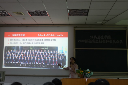 彭鸿娟向新生们详细介绍了学院发展历史、学科方向、科研平台、教师队伍、研究方向、招生专业和毕业去向等信息,让同学们迅速融入公卫学科氛围,了解学院科研平台和方向,确立今后学习和发展的目标。