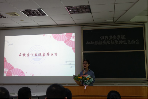 2019级硕士研究生陈嘉婷同学代表在校生分享了作为抗疫志愿者参与疾控中心工作的经历和感悟,并以此激励同学们尽快调整心态,夯实专业基础,努力让完成角色蜕变。