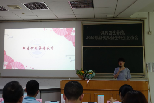 2020级硕士研究生梁芬同学代表新生发言,分享了她从北国哈医大怀揣憧憬奔赴南医的向往和期许,并从“新起点,新征程,新期待,新方向”四个方面表明新生未来的目标和规划。