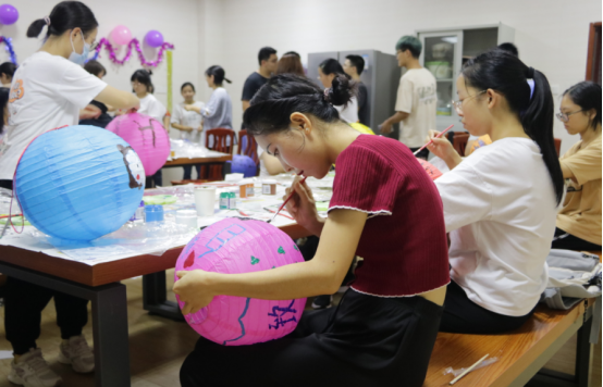 陶味居中,“妙手题梦”活动的场面也是是十分火爆。学子们自己动手制作自己的中秋灯笼,寄托对家乡的思念和对家人的美好祝愿,也更好地融入到博雅大家庭中,纵使身处异乡,也有那么多志同道合的博雅人相伴,共赏明月。
