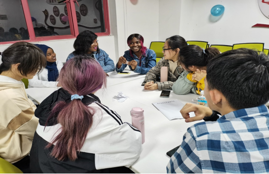 讨论人员共分为五个小组,讨论时长为1小时。第一组的讨论主题聚焦于如何更好地开展非母语学习,国际学生分享了如何提升非母语运用能力的技巧,这对英语学习具有借鉴作用;第二、三组聚焦时间管理,结合中外影视作品与自身经历,分享时间规划技巧,交流提高效率的办法,同时提及兼职、见习等积累社会经验的途径;第四组聚焦全面发展,分享如何在学习之余投自身所好、培养兴趣特长,放松减压、丰富大学生活;第五组关注如何更好地保留原生文化、了解其他文化,来自非洲、拉美等地区的留学生上台介绍了家乡文化,大家听得饶有兴致,更好地体会如何在个性中找寻共性、开展跨文化合作。