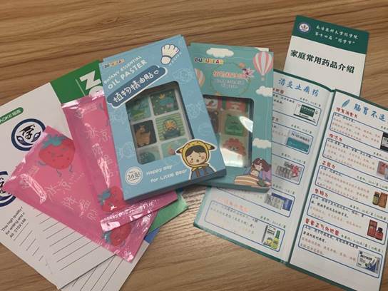 学院为每位新生准备开学温馨礼包,除了清凉贴、驱蚊贴、定制笔记本等校园必备物品,更有师兄师姐设计制作的《家庭常用药品介绍》一份,让“小艾叶”入学即感受浓浓“药”味。