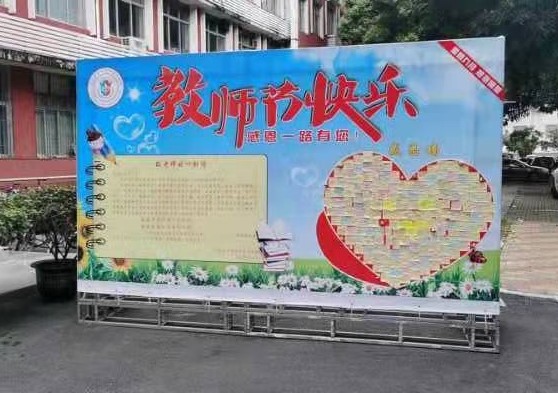 “叮铃铃”——熟悉的上课铃打响了,当老师们走上讲堂之后,随着班委的一声口令,同学们齐刷刷起立并齐声喊道:“祝老师教师节快乐!”随后,班级代表走上讲台,为老师们敬献一枝盛放正好的美丽花朵。同时,在这个专属于教师们的节日里,同学们将自己的心意装进了一页节日专属的PPT里,并在每堂课课前都会投影到黑板上,为老师们送上最为真切的问候。
