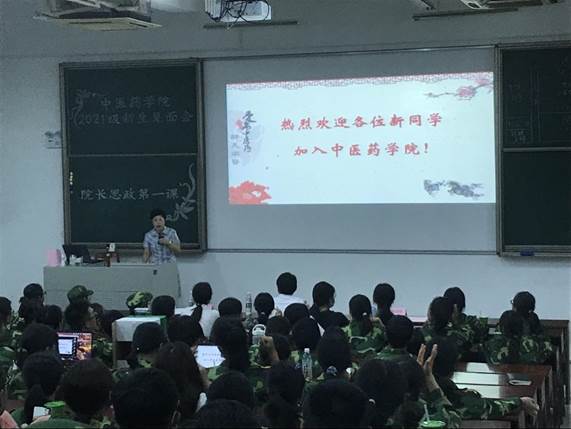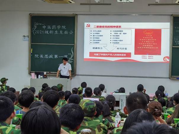 院长肖炜给主会场和分会场的350名新生上了以“赓续百年党史精气神,勇担千年岐黄振兴梦”为题的思政第一课,从“发扬中医药,要从百年党史中感悟精髓要义”、“发扬中医药,要从百年党史中感悟浩然正气”、“发扬中医药,要从百年党史中传承神器法宝”三个层面引导新生感受百年党史精气神,勇担中医药振兴梦。