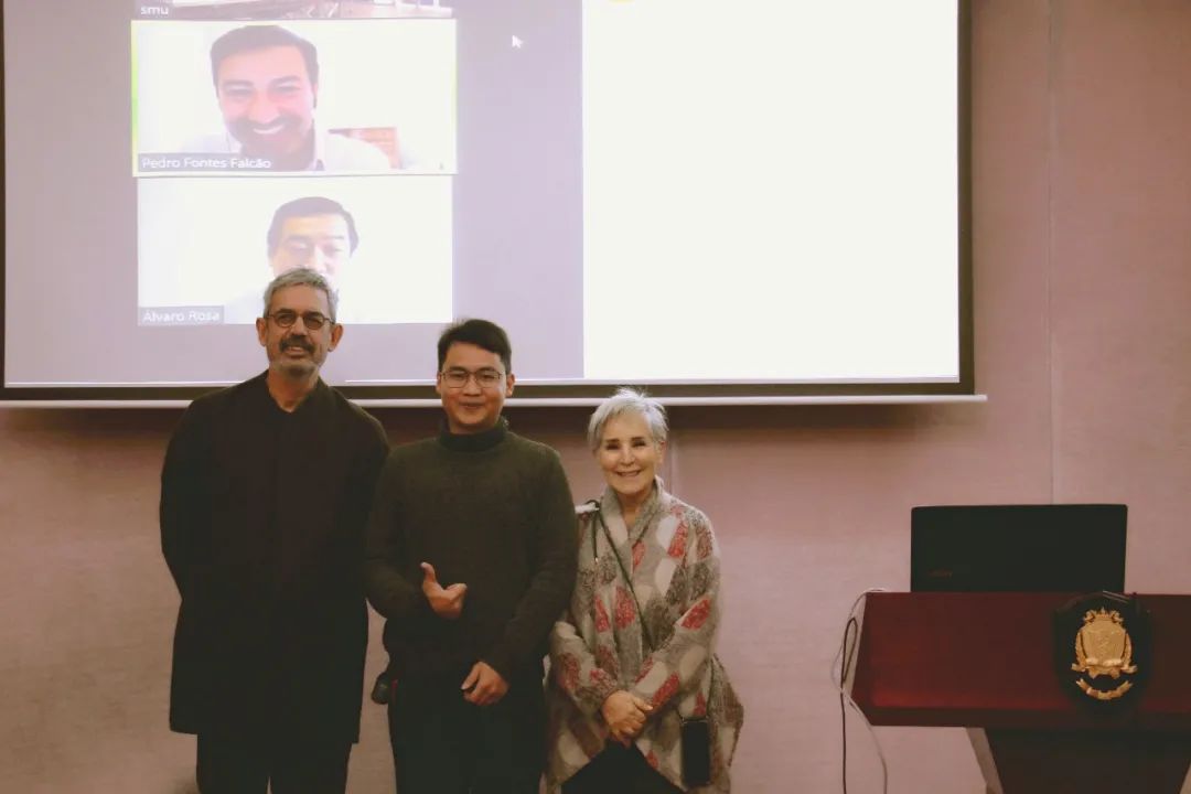 图为答辩后与硕士导师Nelson António教授、中国项目负责人Virginia Trigo教授合影