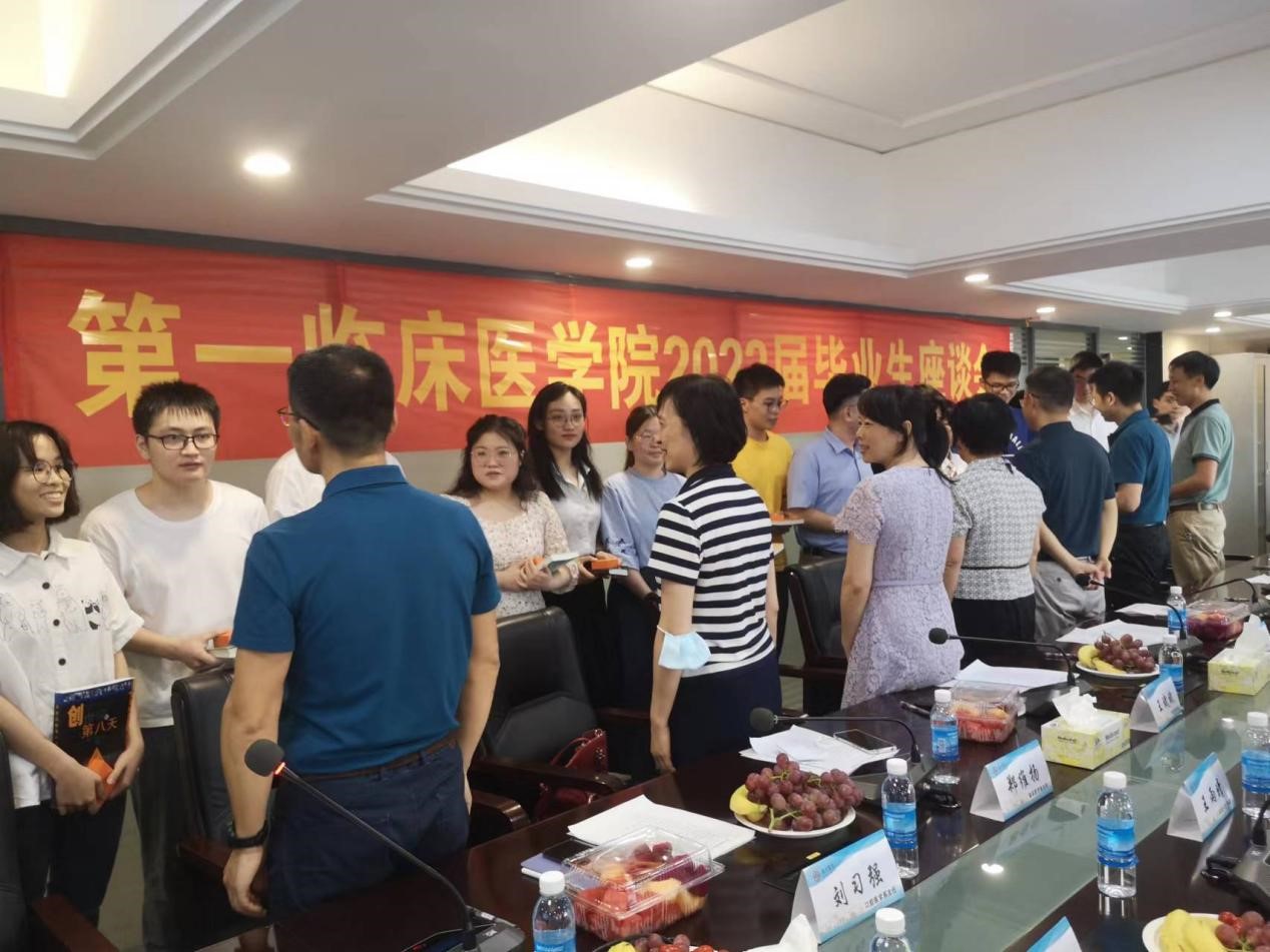 6月17日下午,第一临床医学院召开了2022届毕业生座谈会。学院党委副书记张广清,学院教务处、学生处、团委,各院系相关负责人以及各毕业班本科生和研究生代表14人参加了座谈会。