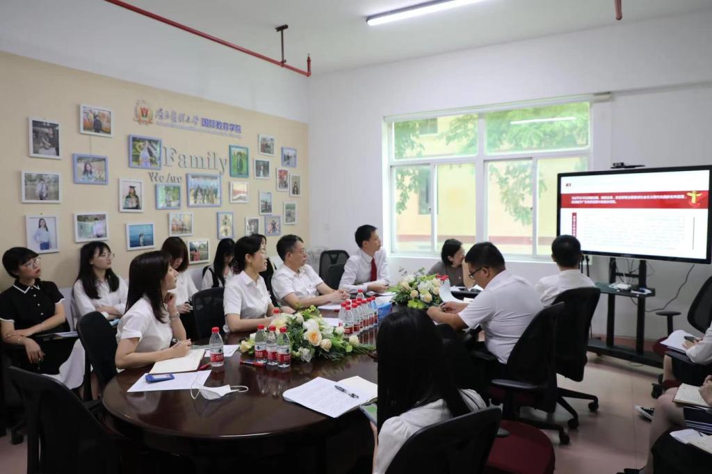6月24日,学院召开党委理论学习中心组(扩大)学习会议,陈君围绕省第十三次党代会精神,结合学院工作实际,讲授了专题党课。陈君强调,学院上下应凝心聚力抓好会议精神学习宣传和贯彻落实,努力把大会精神转化为加快推进我校来华留学教育高质量发展的目标任务、工作举措和实际行动,以高站位服务国家战略,以高标准助力广东省教育事业和学校发展。
