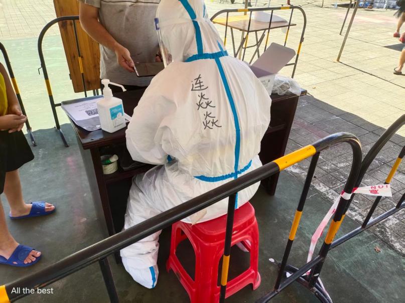 2020级法学(卫生法学)专业的连焱焱同学在家乡突遭疫情袭击时前往一线投身于抗疫工作中。十多天的日子里,每天早起穿防护服开始核酸采样已成为她的日常,尽管天气炎热,酷暑难耐,但她仍每天坚持,只因“自己是一名预备党员,就应该做好先锋模范的作用,在危难之时挺身而出,展现新一代青年的风采”。