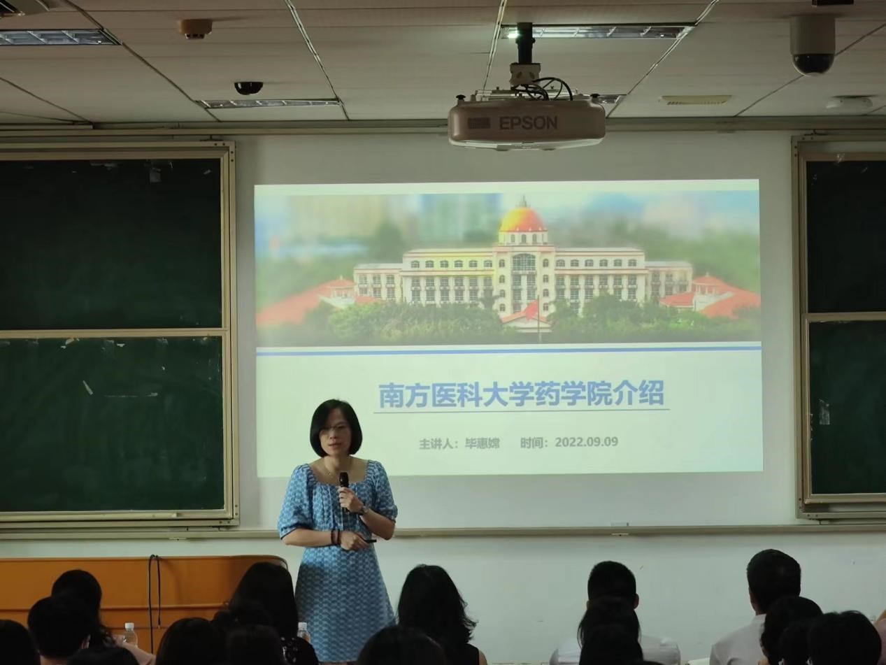 院长毕惠嫦介绍了药学院的发展历程、办学理念,同时对师资队伍、学科平台、科研情况、人才培养等作了详细介绍。她结合自身的科研经历及研究生培养体会,从10个方面对同学们提出殷切期望,希望同学们树立科学研究的远大志向,严格遵守科研道德和科研诚信,潜心科学研究,为我校药学学科的建设和发展贡献自己的一份力量。