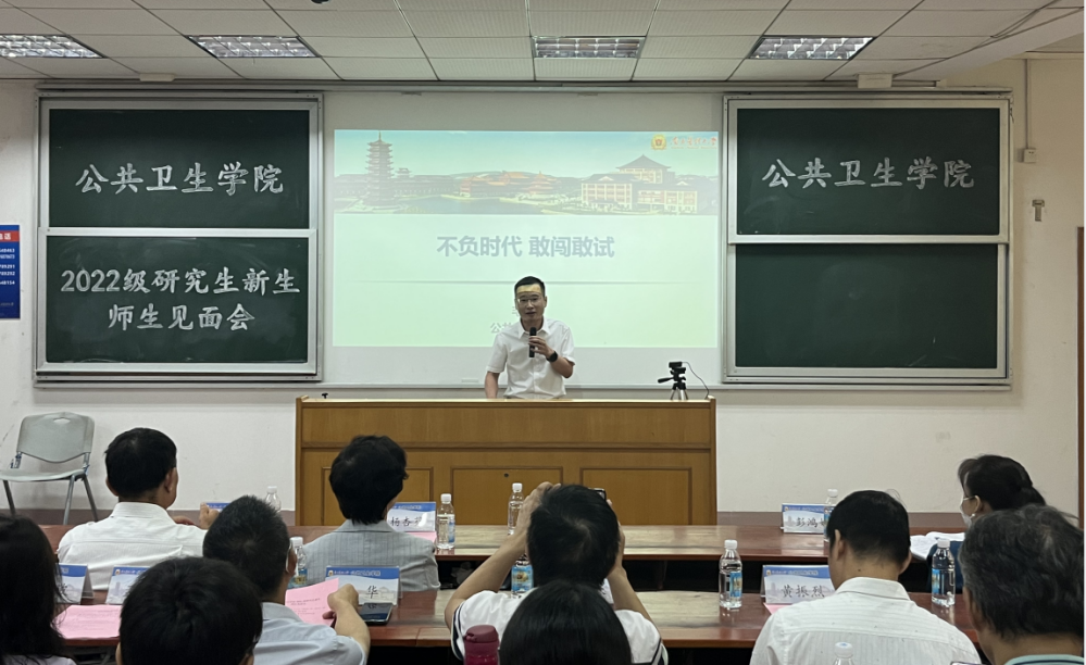 9月9日,公共卫生学院在校本部教学馆举行了2022级研究生新生师生见面会。学院党委书记申玉杰、院长杨杏芬、副院长毛琛、彭鸿娟、导师代表及全体研究生新生出席会议,会议由申玉杰主持。