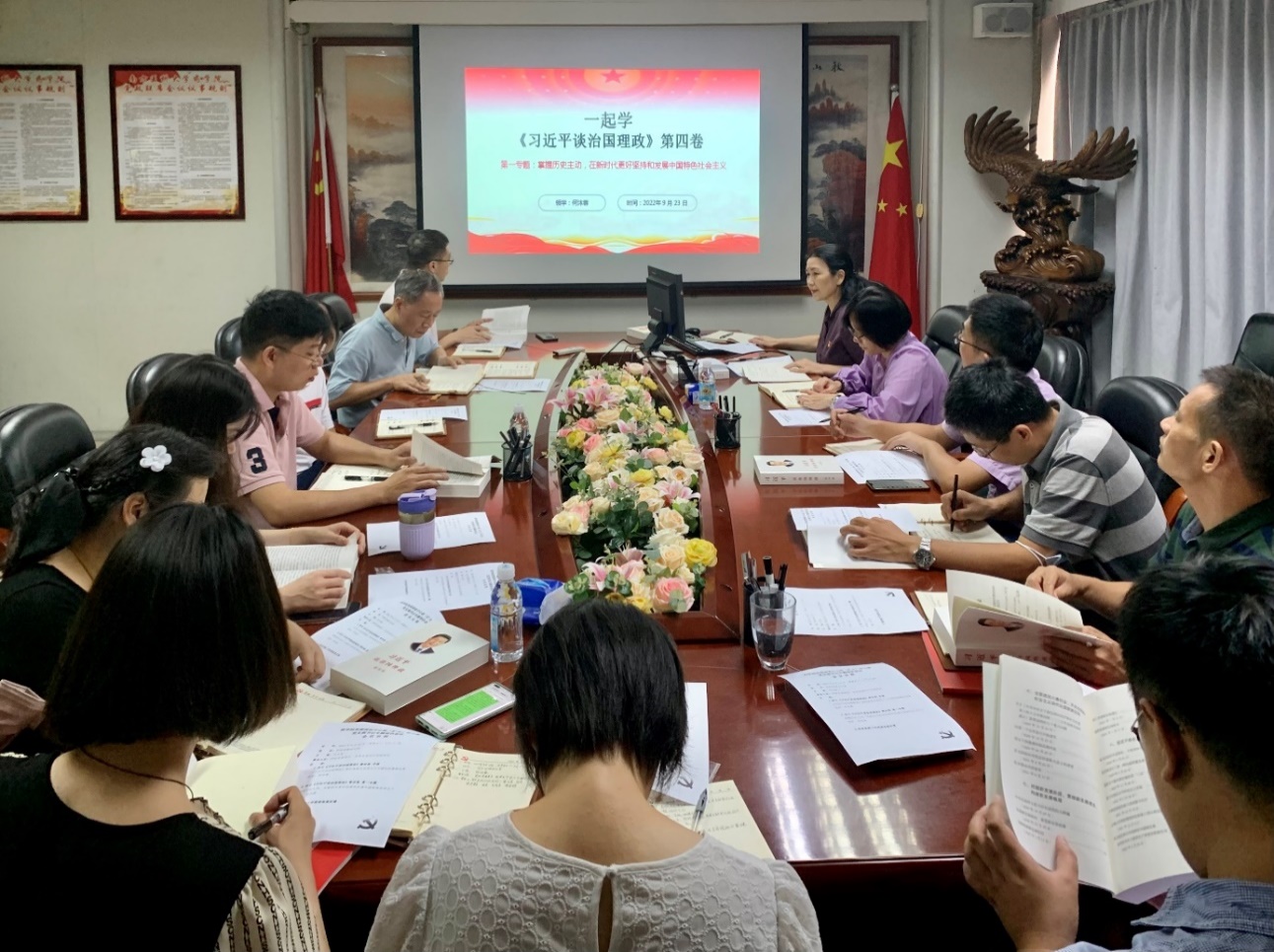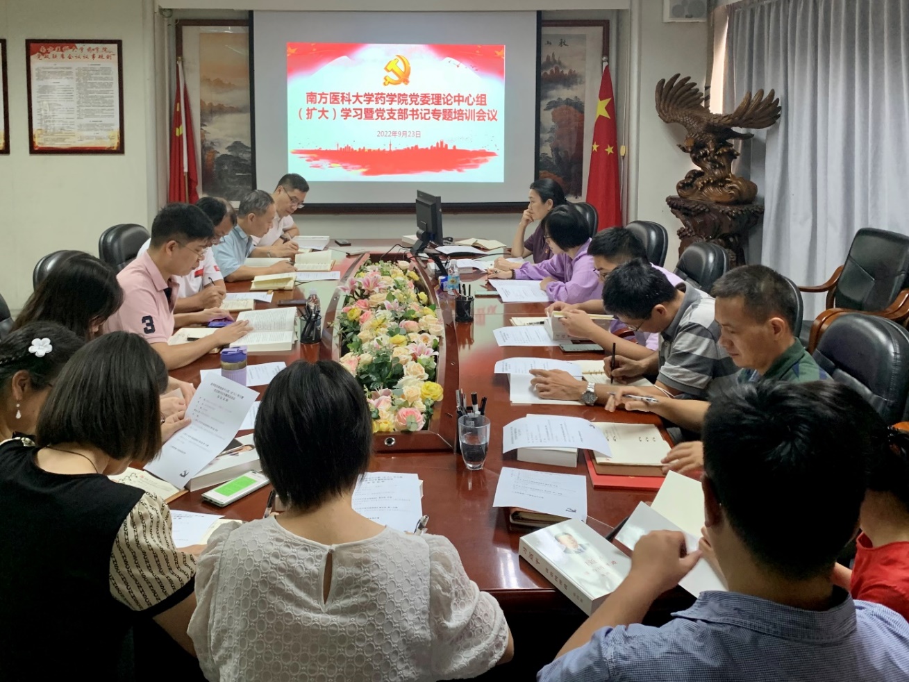9月23日,药学院召开党委理论学习中心组(扩大)专题学习暨党支部书记专题培训会,认真学习《习近平谈治国理政》第四卷。学院党委副书记、院长毕惠嫦主持会议,党委领导班子成员、全体党支部书记及组织员参加专题学习和培训。