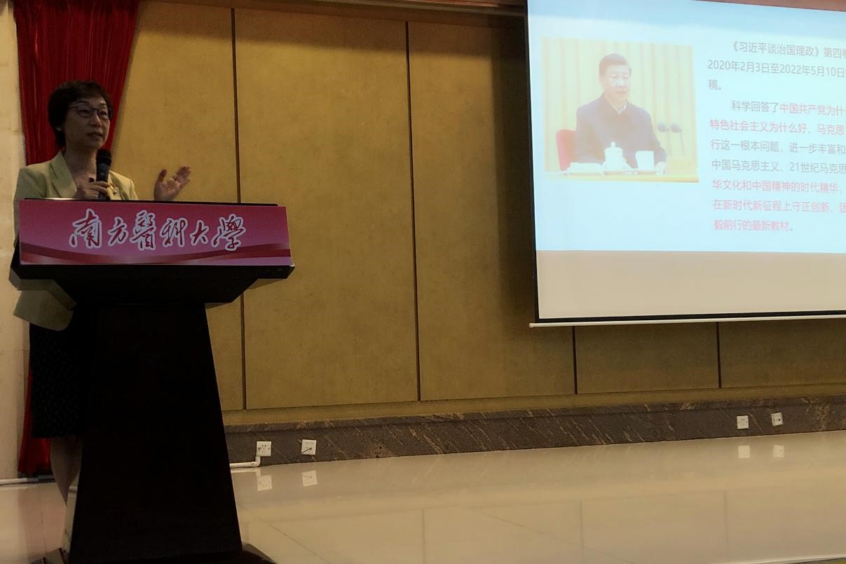 杨杏芬从具有里程碑意义的伟大变革、开辟马克思主义中国化时代化新境界的思想指导、擘画新时代新思路、新战略、新举措的宏伟蓝图等三个角度,向同学们展现了当今世界百年未有之大变局下的“中国方案”,并结合学科专业性,从“非典”抗击史入手,回顾了我国目前所遇到的公共卫生问题以及出现的新挑战。