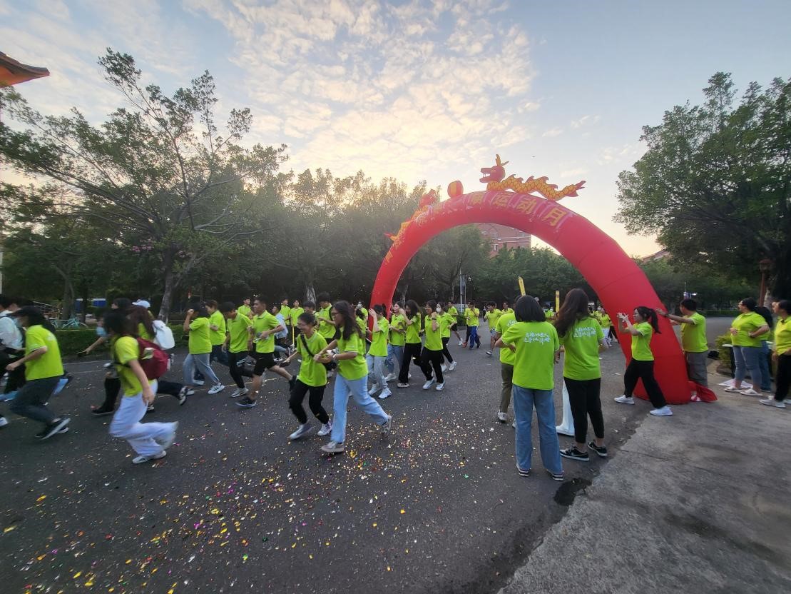 在学工部部长陈士良的一声“开跑”号令下,老师同学们一同出发,开始2.2公里绕校园跑。这一路,有拼搏、有汗水,有欢笑、有陪伴。