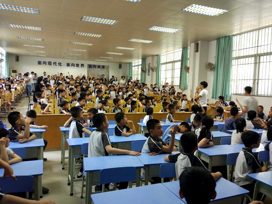 4月18日下午,检验与生物技术学院20余名志愿者来到顺德区容桂街道城西小学举办一年一度的环保手工制作活动,大学生和小学生聊环保开展了一次特殊而有意义的活动。