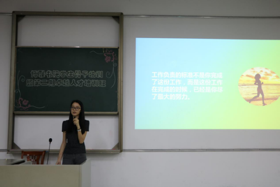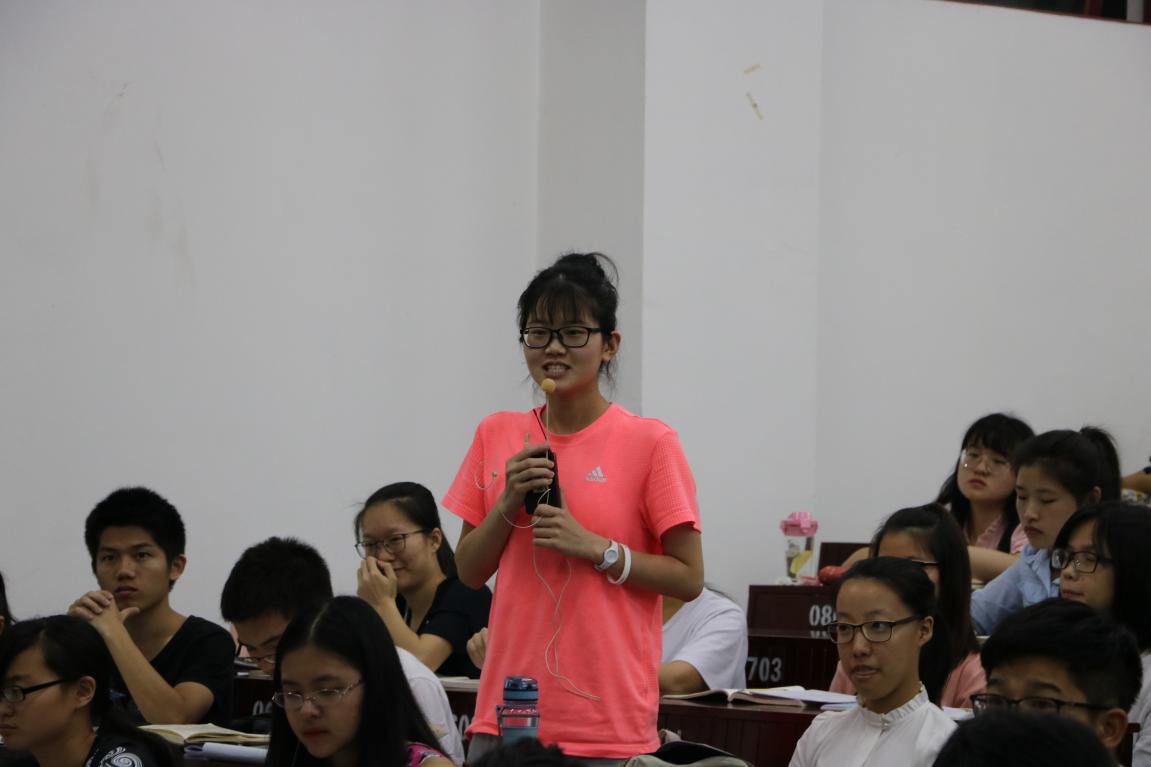她从三个方面告诉我们怎样高效处理时间。首先,知道自己做什么,要确立目标,端正心态,做到心中有数。在部门工作,要学会适当牺牲,乐于奉献;同事之间要注重合作,要有责任有担当;要坚持原则,守住底线,在学习和组织工作中取舍得当,做到两不误。其次,要学会做重要的事情,有的放矢。对事情紧急的情况做分析,对时间做正确管理,要明确自己的时间花在哪里并反思得到什么收获。最后,在接受到任务时要学会做好具体安排。杨敏还建议大家使用“滴答清单”“奇妙清单”等时间管理的软件来提醒自己的工作情况,并挑战自身“拖延症”“懒症”等不良习惯。杨敏认为,学生干部不是特殊群体,不能打着学生干部的名义偷懒,身为学生骨干,就要有二十四小时待命的意识,敢于挑战自己,和时间赛跑,有效地管理时间。