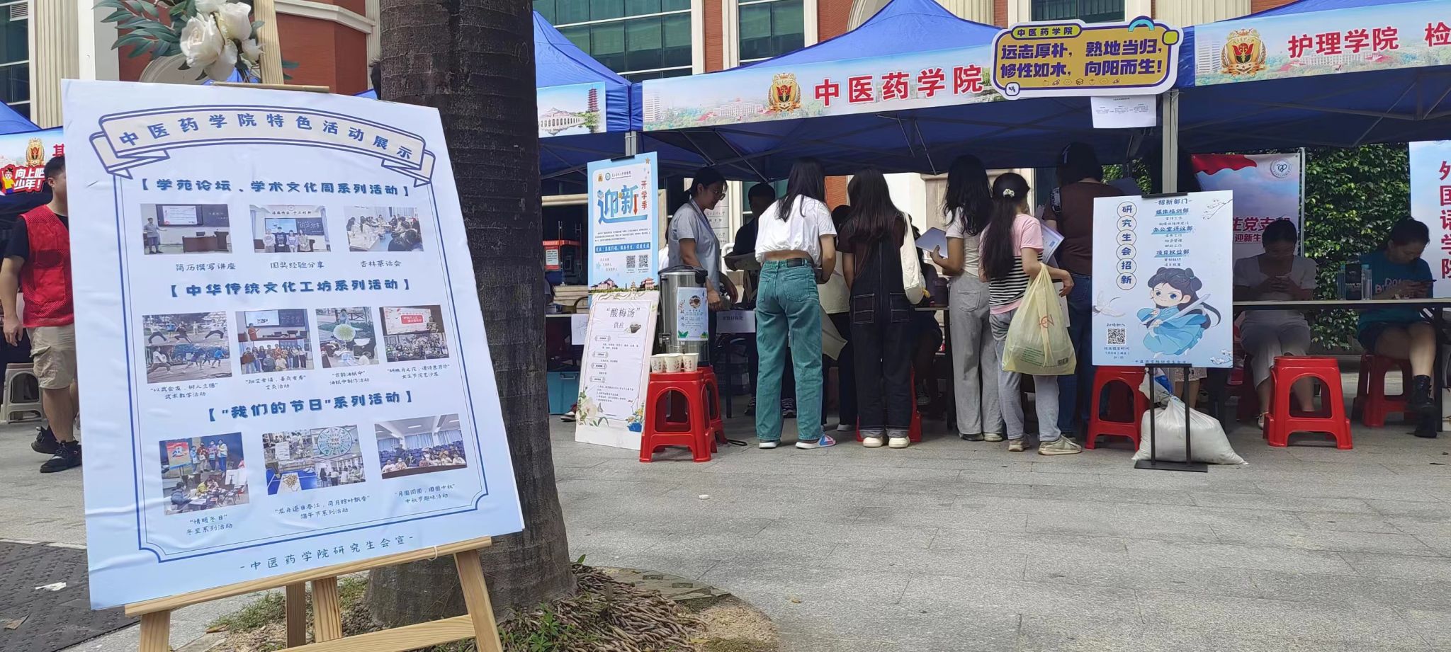 9月1日,新生报到,热情的师兄师姐们早早搭起了小棚子,为新来的同学们一一登记,每位新生都收到了学院研会精心制作的礼物:一个精心设计的印有中医药文化元素的帆布袋和一套精美的校园卡套。这些文创产品不仅实用美观,还体现了中医药学院对传统文化的传承和创新。师兄师姐们还清晨四点起床熬煮了新鲜的酸梅汤,消散旅途的疲惫。点点滴滴寄语新生珍惜在南方医科大学中医药学院的学习机会,努力钻研中医药知识和技能,继承和发扬中华民族的优秀文化遗产,为中医药事业的发展和人类健康的福祉贡献自己的力量。