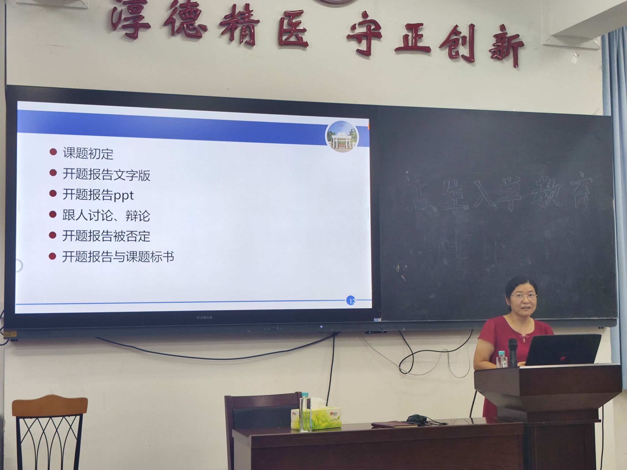叶深溪、孙晓敏向新生介绍了中医药学院的基本情况、院史、辉煌成就和科研生活。针灸推拿骨伤系主任黄泳分享了研究生在科研生活中的点点滴滴。她告诉同学们,要保持科研的热情和兴趣,制定科研的目标和计划,学习科研的方法和技能,争取科研的创新和突破。她还分享了自己如何与导师、同门、病人、社会等各方沟通协作的经验和技巧;用自己的亲身经历和感悟,让同学们明白科研的艰辛和快乐,看到科研的价值和意义,从而对科研充满信心和期待。
