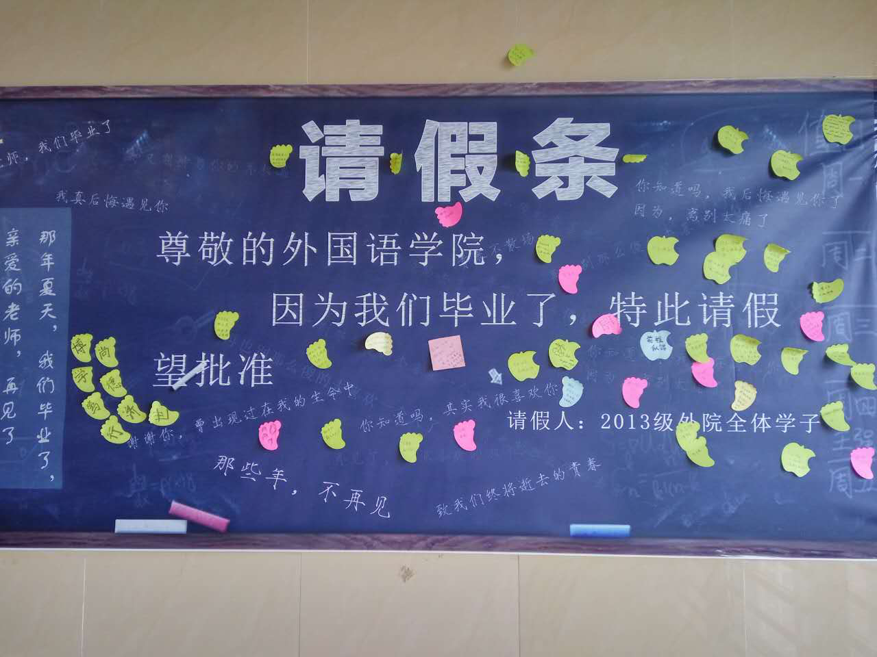 为了给毕业生提供一个表达对母校、同窗、导师深厚情感的平台,学院设置毕业留言墙,毕业生纷纷在留言墙前写下毕业感言,既表达对母校的依依不舍的感情,也为母校送上深情的祝福。