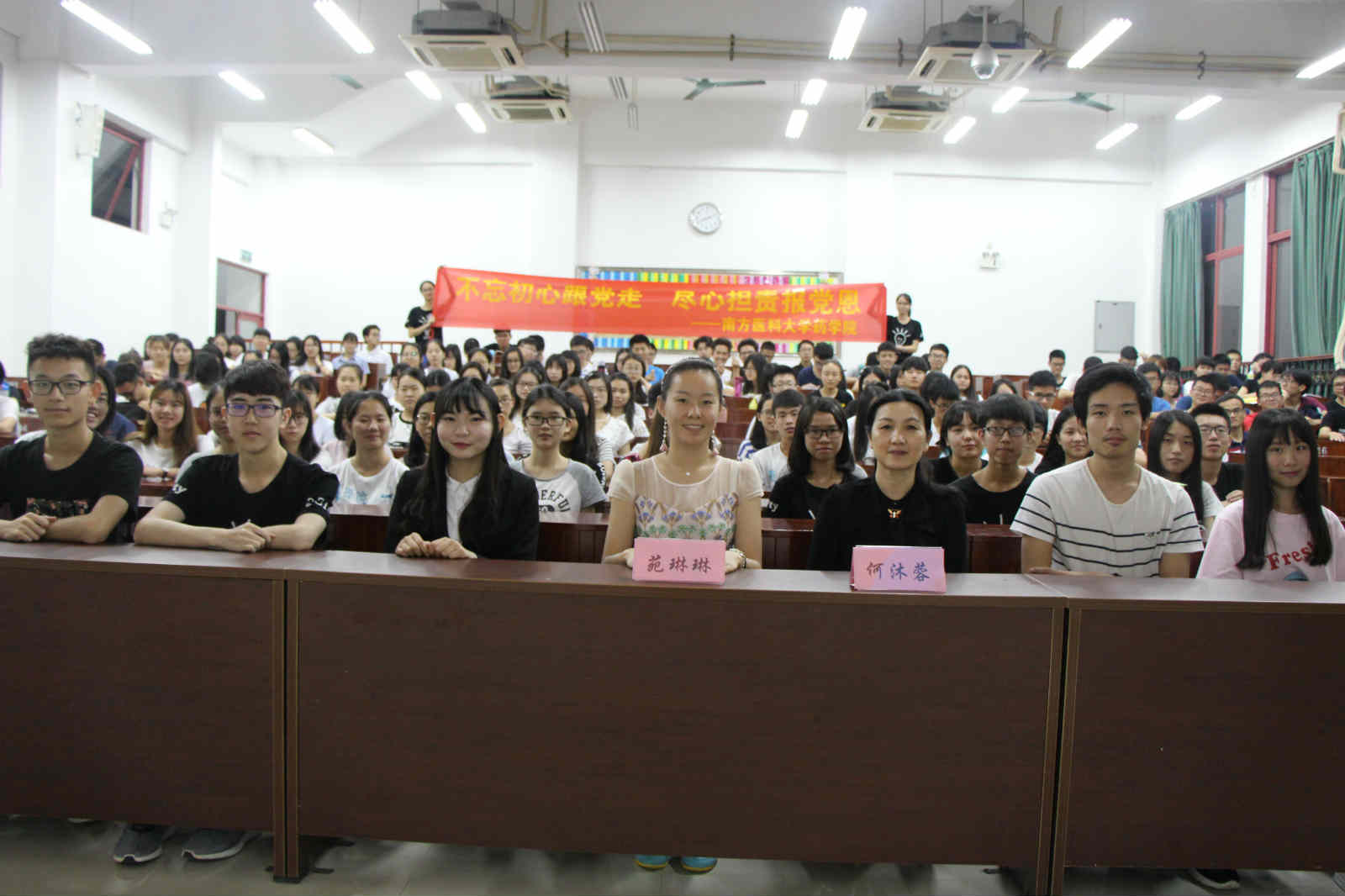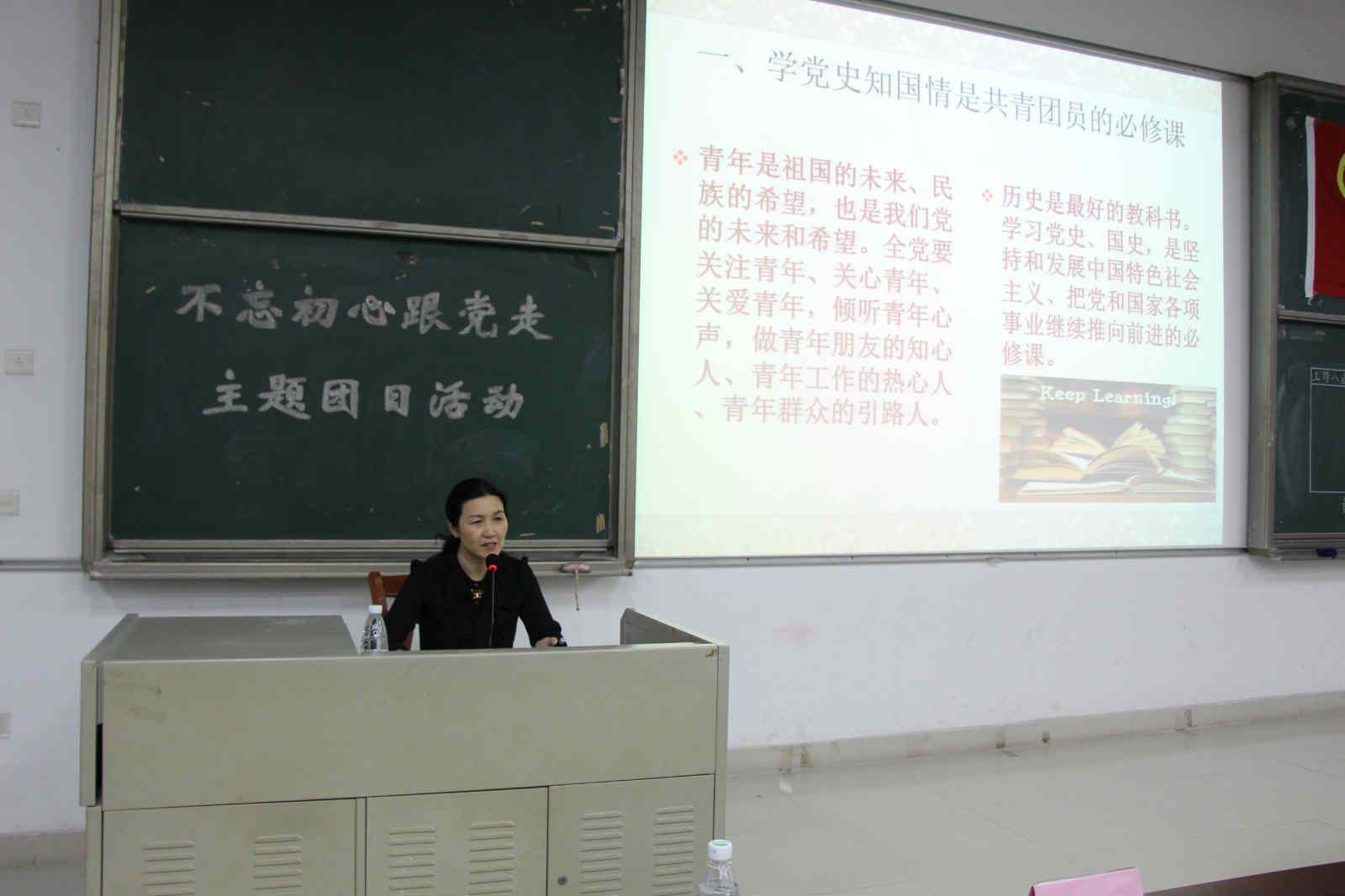 药学院党委书记何沐蓉为大家带来了一堂生动的党课。她表示,学党史、知国情是共青团员的必修课,她用6句话和6个数字带领团员青年回顾了中国共产党90多年的光辉历史:分享了中国共产党始终奉行的1个宗旨——全心全意为人民服务,分析了马克思主义与中国实践相结合的2次历史性飞跃以及产生的2大理论成果,回顾了中国共产党90多年历史的3个时期、3件大事、3大贡献以及4次大的失误和挫折,同时讲述了共产党始终注重党的思想、组织、作风、制度和反腐倡廉的5大建设,并总结了共产党90多年的光辉历史留给我们6个方面的现实启示。此外,何沐蓉还带领大家共同学习了“两个一百年”奋斗目标、“中国梦”、“五位一体”总体布局、“四个全面”战略布局、“一带一路”等常见的政治词汇。她指出,青年是祖国的未来、是民族的希望,号召广大团员青年增强使命感和责任感,与党同心同向,在政治上、品行上、作为上做合格官员,发挥模范带头作用,不忘初心,不忘党的理想、信念、宗旨,时刻记得“我们是谁、为什么出发”。