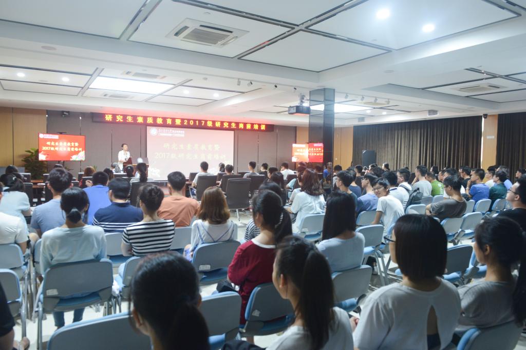 三名优秀毕业研究生介绍了自己的学习经验,使新生对即将到来的学习生活有了更立体和形象的感受。科教科为全面掌握新生心理健康状况,还对新生进行了全员心理测试。