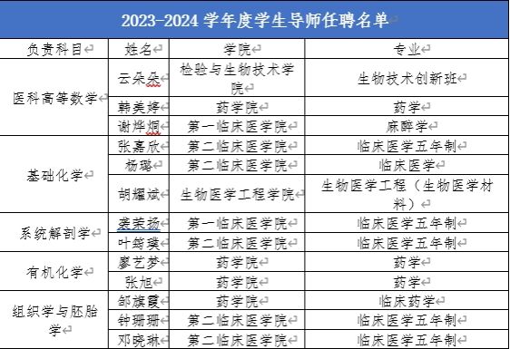为更好开展本次学生导师聘任活动,会议前期,教学发展中心学生学习支持中心(以下简称学支)提前在顺德校区面向大二学生开展了学生导师招募活动。招募考核分为面试和笔试两个环节,应试科目包括基础化学、高等数学、系统解剖学、有机化学和组织学与胚胎学。共34人参与本次活动,其中13人最终确定为各科学生导师。