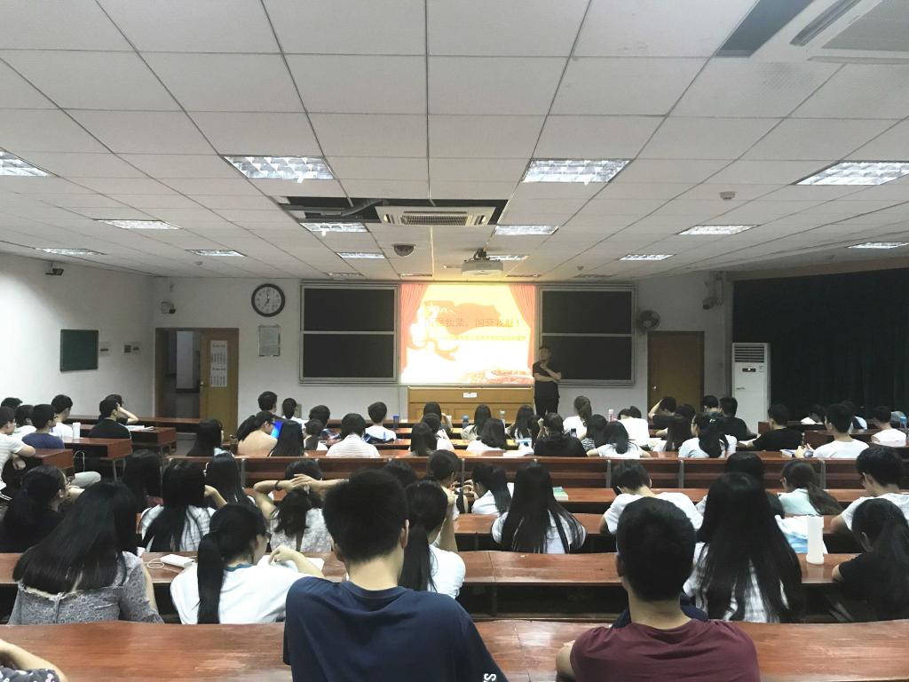 申玉杰从抗日战争、抗美援朝、两弹一星,讲到抗战胜利纪念日大阅兵、海外撤侨行动,从历史谈到今朝,以高铁、《战狼2》等例子,让学生们感受到国家富强的荣誉感,也引导学生应学无止境,作为一名新时代的大学生,从此时此刻做起,鼓起干劲,立足本职,学好本领,在青春之时打好基础,为实现中国梦积蓄力量。