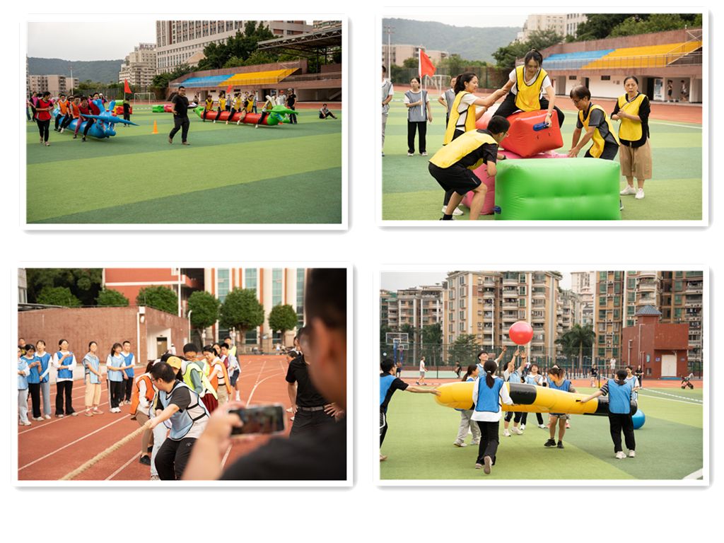 比赛项目丰富多样,包括十拿九稳、旱地龙舟、快乐小脚、过河搭桥、师生拔河等。在各组队员积极参与、团结协作中,参赛队伍分为教师组和学生组,各组队员积极参与、团结协作,充分展现出公卫师生积极向上、干事创业的精气神。