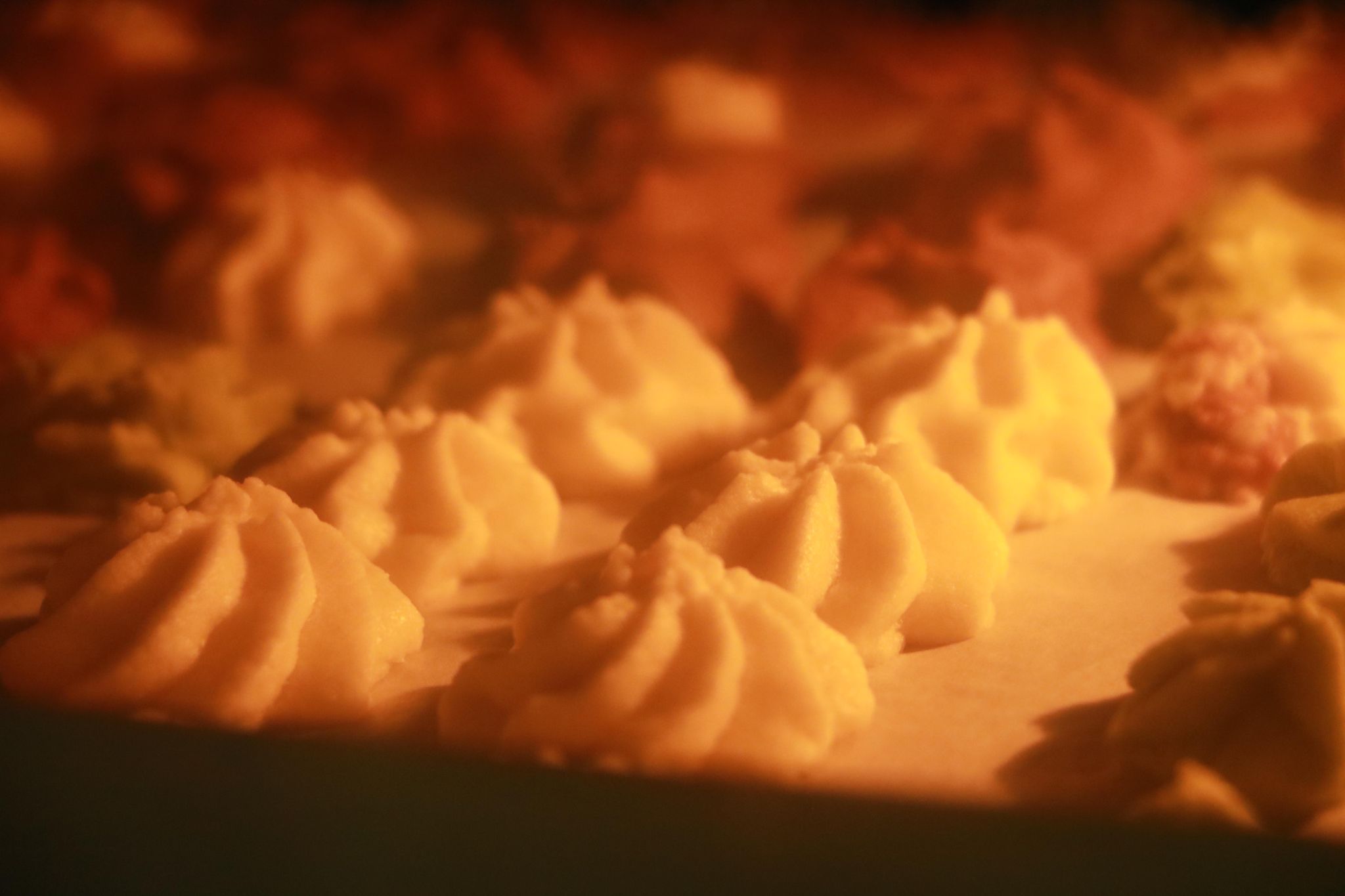 在陈莹导师的耐心指导下,同学们开始了第一堂课:黄油曲奇。软化黄油、打发蛋清、搅拌均匀、挤压成型,一切都井然有序地进行着。烤箱门打开的瞬间,黄油曲奇独特的酥软香味弥漫到空气中,钻入每个人的鼻腔里,令人口齿生津。咬上一口,酥酥脆脆,回味无穷。