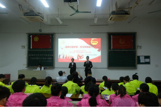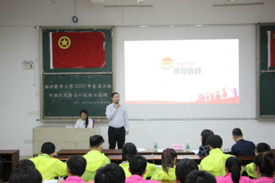 11月3日,南方医科大学2017年“青年马克思主义者培养工程”培训班开班仪式暨第一次理论授课在顺德校区春华堂举行。出席开班仪式的有广东省青联常委、广东省团校青少年研究所所长林楠教授、校团委书记陈旭坚以及来自校、院各团学组织和学生社团的126名培训班学员。