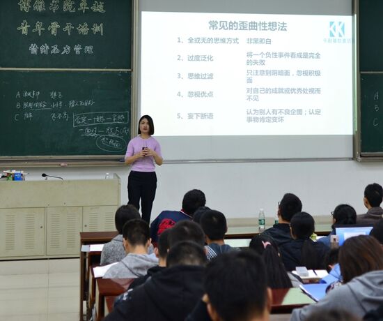 最后,彭梦远通过案例分析,指出不同人面对相似情景产生不同思维的原因,她还告诉同学们影响行为80%在于潜意识,要学会从中发现自己的心态瓶颈,调整不合理的信念,形成阳光心态,造就幸福人生。