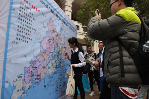 招募活动在顺德校区举行,由招生办公室主办、招生宣传协会承办。在2016-2017年南方医科大学寒假回访地图幕布前,许多路过的学生停下脚步,在报名成为志愿者以后,纷纷在地图上标注出自己母校的位置。志愿者们表示很高兴能够借着志愿活动的机会回母校看一看,并向高三学子分享自己的高考经验,为他们排除高考、大学之惑,同时也为他们的大学之梦添砖加瓦。