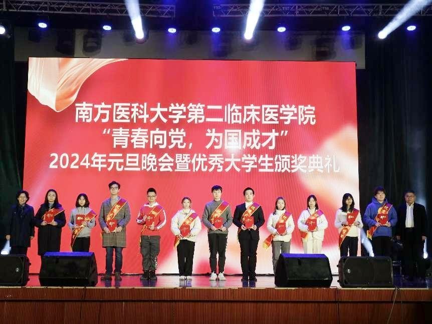 为丰富学生的课余文化生活,推动美育与思政教育相融合,表彰一批优秀大学生、优秀班级,广泛宣传先进典型,营造良好学风,近日,第二临床医学院在顺德校区举办“青春向党 为国成才”元旦晚会暨优秀大学生颁奖典礼。南方医科大学、第二临床医学院各级领导、老师,学院顺德校区全体学生近千人参加了活动。