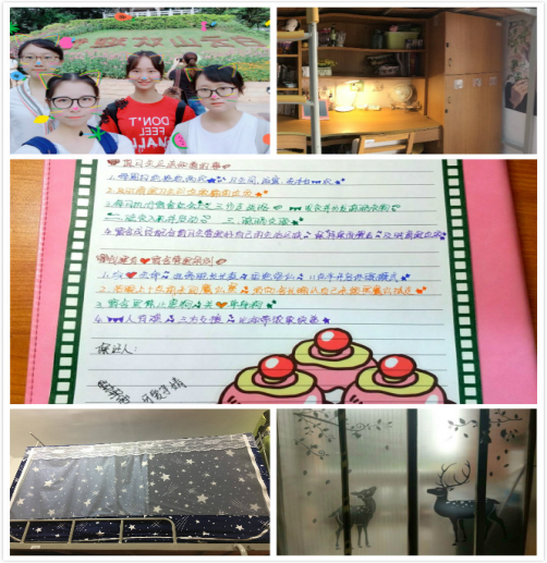 参赛的宿舍成员为了此次比赛,有的将宿舍打扫得干干净净,有的负责将宿舍装饰得美观大方,还有的用心地写出一条条宿舍公约来共同遵守。宿舍成员更是多才多艺,勇敢秀出自我。