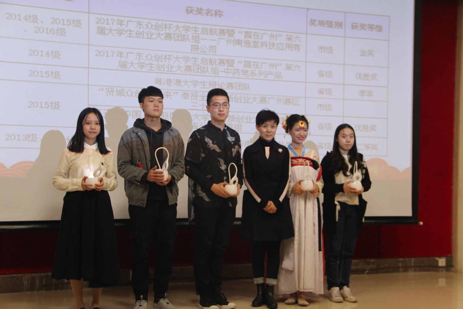 在大会播放的年度学生工作总结回顾视频中,学院2017年开展了弘扬中医药文化的系列品牌学生活动如中医药文化节和中医经典诵读等活动,在中医药专业类竞赛中多个项目获得国家级奖项,其中,纪文娟、刘茜言、钟观兰、黄嘉兴4名同学代表我校荣获了在北京举办的全国《黄帝内经》知识大赛总决赛二等奖,成为广东省参赛高校唯一获得全国奖的代表队。在大学生创新创业方面,《亚健康管理模式的构建与实践》获得挑战杯国赛一等奖。系列成绩的取得,源自于学院坚持“传承经典·弘扬传统”为核心的工作理念,重视培养学生对中医药专业的传承和创新精神。学院谢炜、李娟、周迎春三位教授荣获第四届“广东省名中医”称号,中医内科罗仁教授获得“2017荣耀医者”公益评选活动“中医药贡献奖。”