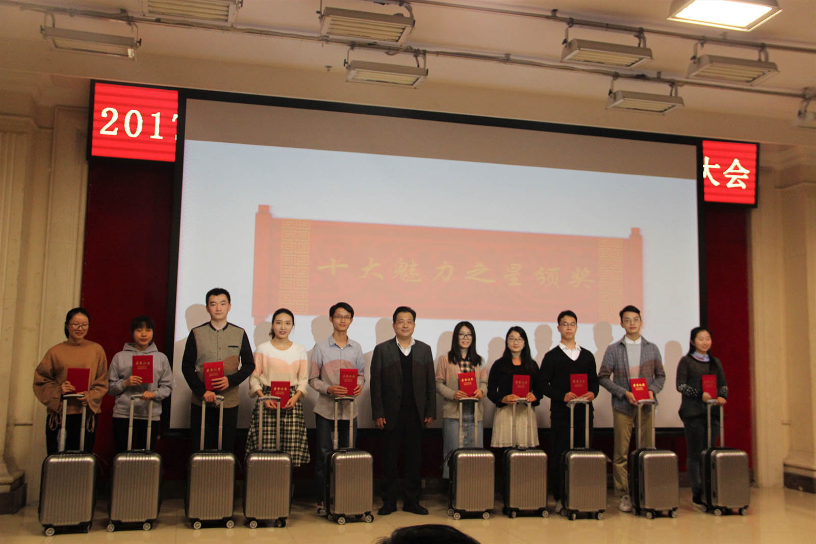 响应“筑梦引航”工程“榜样导航”的号召,通过学生自评申报、团支部推荐和学院评审选拔,大会现场表彰了2017年在才艺、创新创业、服务、公益、领袖、科研、学习、体育、社团、自强方面表现突出的“十大魅力之星”:2014级中医学赵寅秋获“才艺之星”,2015级中药制药专业黄赟获“创新创业之星”,2014级中西医临床医学专业刘锦鸿获“服务之星”,2015级中西医专业朱仁艳获“公益之星”,2015级中西医专业钟伟兴获“领袖之星”,2013级中西医专业曾丽莹获“科研之星”,2013级中西医专业孟涵获“学习之星”,2013级中西医专业郭广宇获“体育之星”,2015级中医专业熊一凡获“社团之星”,2015级中药学专业谢银萍获“自强之星”。希望借以榜样的力量,引领更多的学生走向优秀。