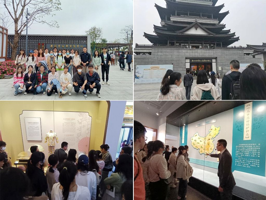 “岭南文化传四海,华夏精神永流芳”。广州市文化新馆布局分为五区:公共文化中心、曲艺园、广府园、翰墨园和广绣园。在讲解员的引领下,同学们首先聚焦于公共文化中心的中心阁,了解岭南地区抗争和发展近现代史。讲解员重点介绍了岭南的道地药材,科普了诸如陈李济、王老吉、潘高寿等历史悠久的品牌,简述每一个老字号背后艰苦奋斗的“发家史”。