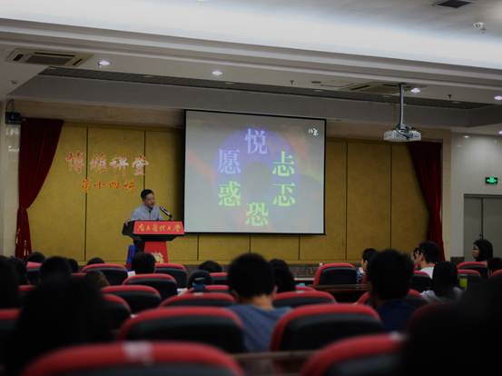 本次讲座,皮明老师用视觉艺术家的视野,以汉字“心”为载体,从关注心灵健康的视角出发,多维度的观察“心态”,揭示“心界”所带来的“世界”、“眼界”和“境界”的关联与转变,给在场的同学呈现了汉字里关于“心态”古老而神秘的文化信息以及这些文化符号中所蕴含心灵智慧和能量,加深了大家对于汉字的了解,也帮助他们开拓了多维视角,学会用“心”去观照客观世界与主观世界,以便更好地面向未来。